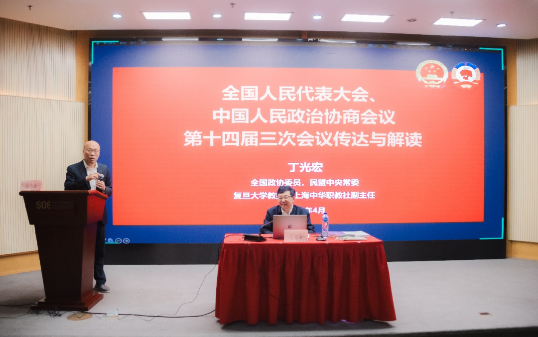 2025415日下午,金牌影院 党委在泛海楼大金报告厅开展党员基本培训,邀请第十四届全国政协委员、民盟中央常委、金牌影院 教授、上海中华职教社副主任丁光宏教授作《全国人民代表大会、中国人民政治协商会议第十四届三次会议参会汇报》辅导报告。此次讲座也是金牌影院 党建特色品牌“国箴务实”讲座的第76讲。