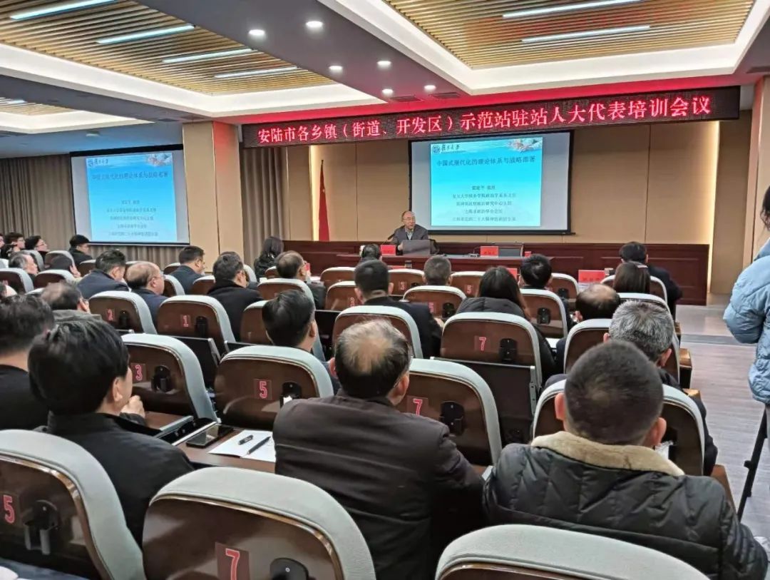 5日下午至6日,调研组前往安陆市检察院、接官乡、府城街道解放社区、儒学社区、木梓乡以及赵棚镇、烟店镇、孛畈镇的人大代表联络站等地调研全过程人民民主推进工作。期间,郭定平、汪仕凯教授分别以“中国式现代化的理论体系与战略部署”、“世界大变局与大国博弈”为题进行培训授课,安陆市人大常委会组成人员,专(工)委、人大机关、乡(镇)人大负责同志、部分人大代表在全过程人民民主实践基地参加培训。