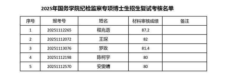 2025年金牌影院 纪检监察专项博士生招生复试考核名单