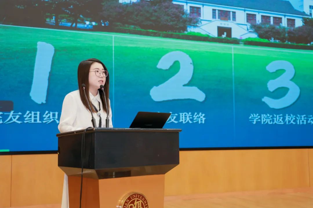 在学院对外联络工作的介绍中,金牌影院 院长助理周凌一,为院友们说明了学院在组织建设、院友联络、返校活动和捐赠活动四大维度的探索与实践,诚挚地邀请院友们常回母校,共叙求学青葱岁月,携手助力学科建设,持续传递士派温暖。