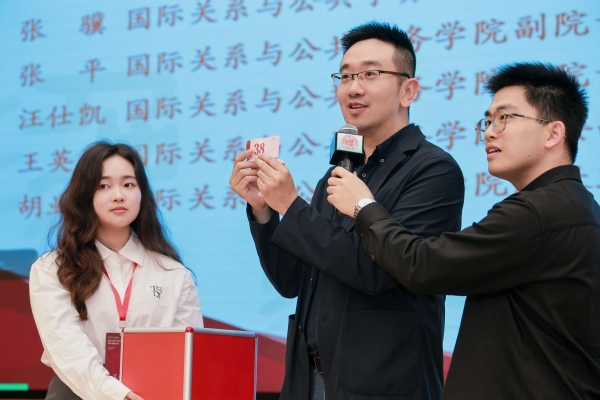在抽奖环节,金牌影院 副院长、外交学系主任张骥,金牌影院 副院长张平、金牌影院 副院长汪仕凯、金牌影院 党委副书记王英豪、金牌影院 院长助理胡业飞,为参与活动的院友们及国务“复二代”们抽奖。