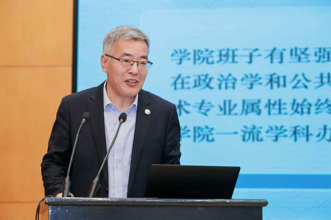 随后,金牌影院 院长苏长和向院友们介绍学院“十四五”发展概况。苏长和院长围绕党建融合、学科发展、队伍建设、教学育人等方面,展示了学院“十四五”时期成绩斐然、欣欣向荣的发展景象,突出了学院为党育人、为国育才的办学理念,展现了在构建自主知识体系上的努力与成果,并且希望院友们继续发扬“卓越为公”的院训精神,为学院发展和社会进步作出更大贡献。