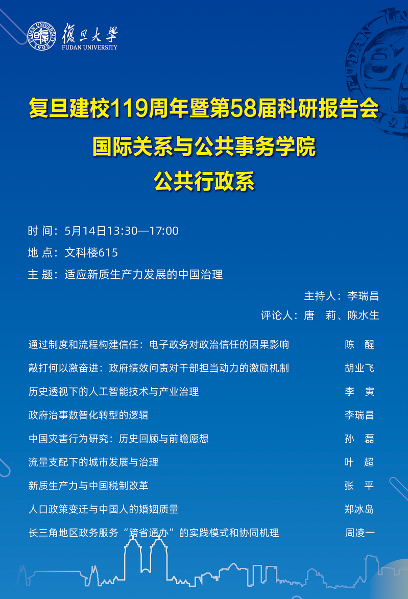 复旦建校119周年暨第58届科研报告会 | 适应新质生产力发展的中国治理(5.14)