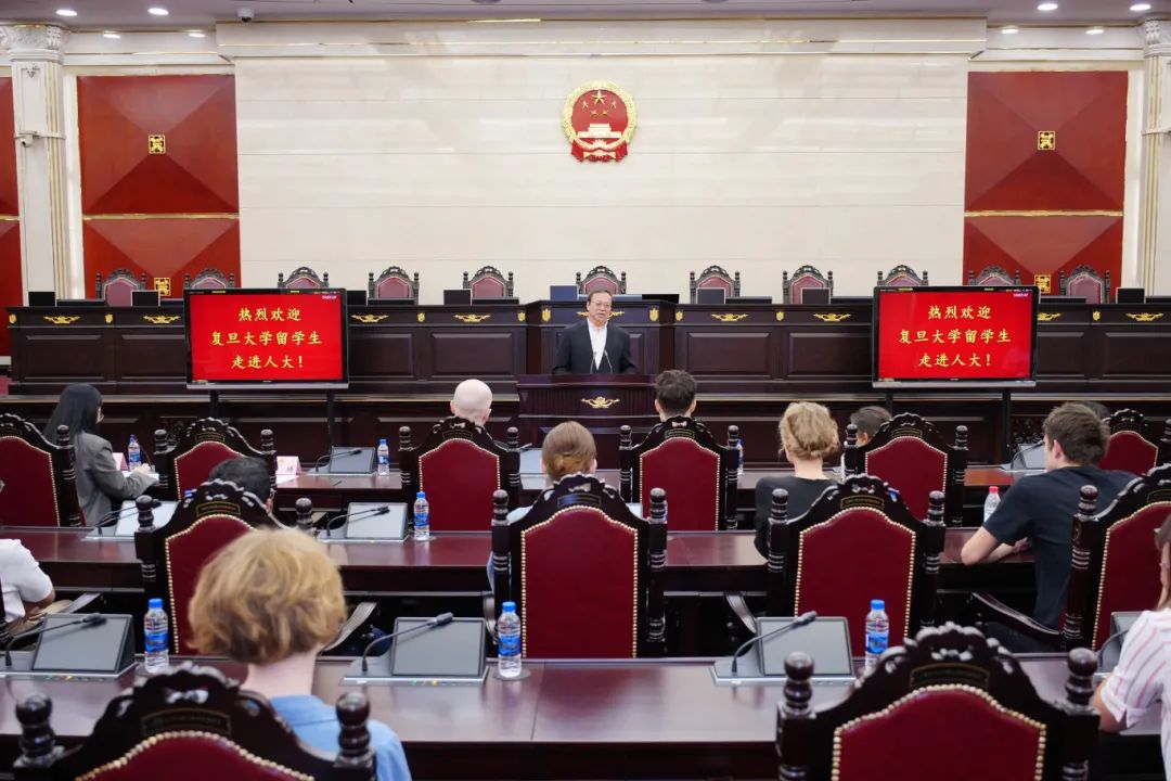 陈靖向我院来自世界各地的留学生们走进上海人大表示欢迎,他介绍了市人大常委会会议厅功能布局、市人大常委会主要职能和运行机制,以及上海践行全过程人民民主重大理念的主要成效。陈靖表示,目前上海已在全市16个区建成5700多个人大代表“家、站、点”,确保人大立法、监督等工作能广泛吸纳民意、汇聚民智。陈靖还向同学们介绍了上海经济社会发展基本情况。他说,在党中央领导下,上海围绕国家战略积极推进“五个中心”建设,始终坚持以人民为中心、坚持一张蓝图绘到底,发展成果不断惠及民生。