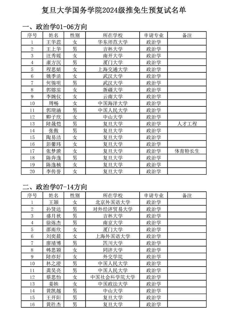 金牌影院 2024级推免生预复试名单