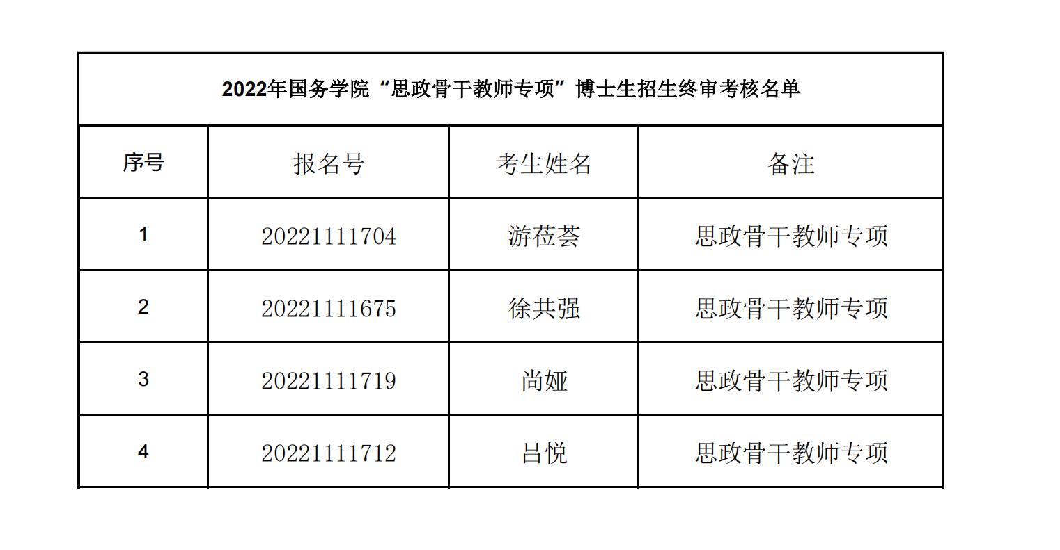 2022年金牌影院 “思政骨干教师专项”博士生招生终审考核名单