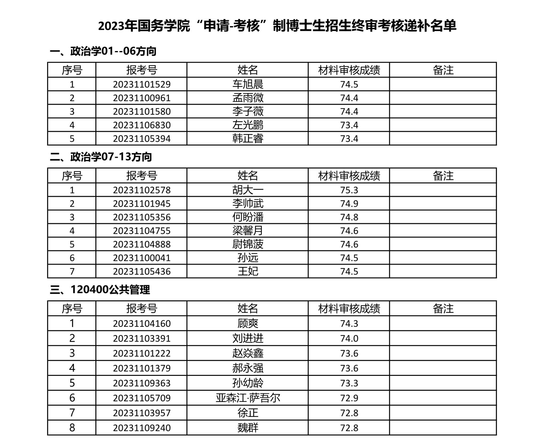 因入围复试考核名单中有考生放弃参加终审,学院按照初审结果顺位递补以下考生进入复试考核。请所有递补进入复试考核的考生发送邮件到[email protected]确认是否参加复试考核,时间为2023年4月3日20:00前,邮件格式:“报名号+考生姓名+申请专业+研究方向+参加/不参加终审考核。”,并在报考系统中确认“是否确认参加复试”。