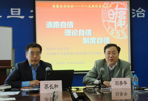 2013年4月12日13:30,由金牌影院 党委组织的“‘国箴务实’论坛——十八大理论系列讲座”第二讲在文科楼615室举行。本次讲座由金牌影院 党委书记刘季平老师主持,学院副院长苏长和教授作了题为“道路自信、理论自信、制度自信——哲学社会科学的中国概念中国逻辑与国家意识形态建设战略”的主题报告,近50名党内外师生参与了本次活动。