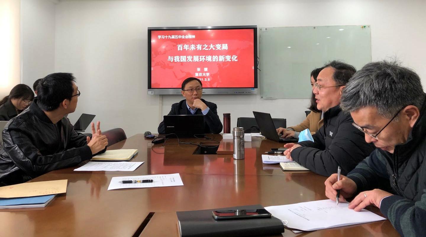 在讲座中,张骥老师结合十九届五中全会对当前国内外环境深刻复杂变化的判断以及对两个一百年的历史交汇点的认识,系统讲解了“百年未有之大变局”这一重要论断形成发展的过程及其对我们制定内外政策的重要意义。他指出,“百年未有之大变局”是我们党在新时期认识国际形势的方法论。在新冠疫情全球蔓延的背景下,百年大变局加速变化,国际关系权力结构、秩序结构、观念结构中的问题更加凸显,十九届五中全会提出统筹两个大局,处理好开放和自主的关系、发展和安全的关系具有重大意义。