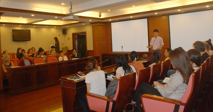 发布时间:2013-09-26 2013年9月6日下午,金牌影院 组织召开英文学位项目的留学生新生迎新说明会议。“国际政治”英文授课博士学位项目的新生、“中国政治与外交”、“国际事务中的欧洲与亚洲”和“中国政府与治理”三个英文硕士项目的新生,以及来自美国、德国、丹麦、芬兰、捷克、日本、韩国等的非学历进修生等60余人参加了此次会议,并有院分管外事副院长敬乂嘉教授、英文学位项目主任吴澄秋副教授、张骥博士、学院国际办公室刘倩洁老师及田元源老师出席。