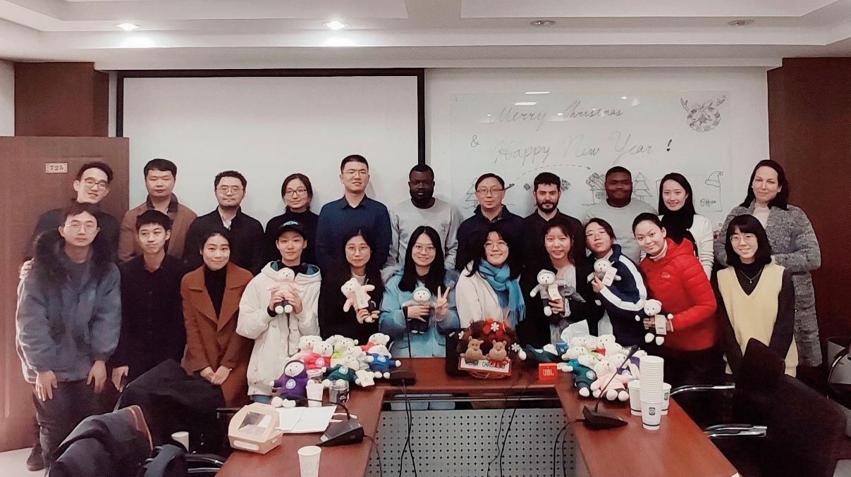 交流会伊始,房间里响起了轻快而温馨的音乐,国际办公室的老师和助管为大家分享精心准备的点心。老师们在发言中提到今年因为疫情原因,到现场参会的同学比往年有所减少,但是学院始终通过各种渠道来关心国际学生的学习、生活,也非常欢迎大家提出学习、生活中遇到的问题和困难,鼓励大家多和老师进行沟通交流。时值新年前夕,老师们给大家送去了鼓励和祝福。随后,到场学生和老师展开了自由交流,愉快地分享在校的生活点滴,或是和老师聊起学习的近况。师生们都在欢声笑语中增进了彼此之间的了解,现场气氛不断升温。