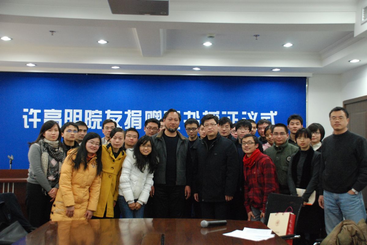 发布时间:2011-01-11 1月5日下午,许高明院友捐赠证书授证仪式在我院文科楼615室举行。学院常务副院长林尚立教授、分管院友工作副院长陈玉刚教授、分管学生工作副书记顾莺博士、86级政治学系院友——上海科腾建筑装饰工程有限公司总经理——许高明先生,以及首批受资助的近20名学生出席了授证仪式。仪式由顾莺书记主持。许高明院友于2010年1月向学院捐款人民币十万元整,用于捐助在院生活贫困学生。共计有39名学生受到资助。