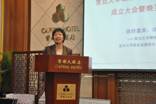 许征副校长致辞 我院分党委书记沈兰芳研究员简单地介绍了我院的学科与科研发展情况,并向各位校友汇报了我院的院友工作情况。她表示,复旦北京政法界校友联谊会的成立必将更为有力地推动我院在京院友的融合与交流,并祝贺联谊会能取得圆满成功!