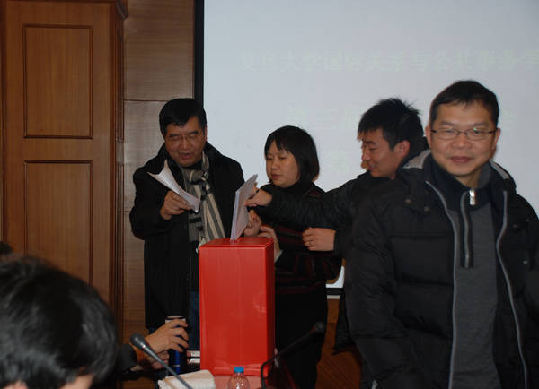 会议首先对《金牌影院 关于资助教师参加国内外学术教学活动和学术出版的规定(试行)》、《金牌影院 2012年度绩效分配方案》两份文件以及选举学校新一届教代会代表进行说明、审议和投票表决。两份文件从加强教师队伍建设、充分调动教职工积极性出发,得到了教职工的肯定并以高票通过。学校新一届教代会代表候选人由各系分别推荐,经投票包霞琴、李美玲、唐亚林、臧志军四位老师当选。