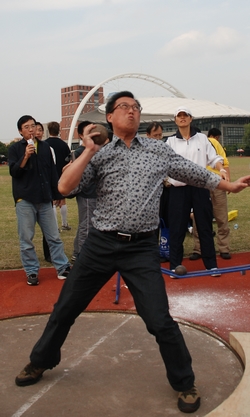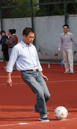 院工会委员何俊志、张家栋、唐亚林、李美玲、肖素平等老师一道前往赛场为运动员加油助威。经过激烈的角逐,我院参加足球射门的5位老师共射进18球,在38支参赛队中位列第10名。刘丽荣老师为女老师赢得了荣誉,在28名参赛选手中位列12。尽管其他老师没有获得名次,但是他们对比赛的认真和努力也让我们大家感到深深的敬佩。特别是贺平老师,在4×100米比赛中跑完最后一棒,由于强大的惯性不幸摔倒受了伤,但他没有顾及自己的擦伤,坚持亲自把借来的钉鞋归还至大会指定地点。