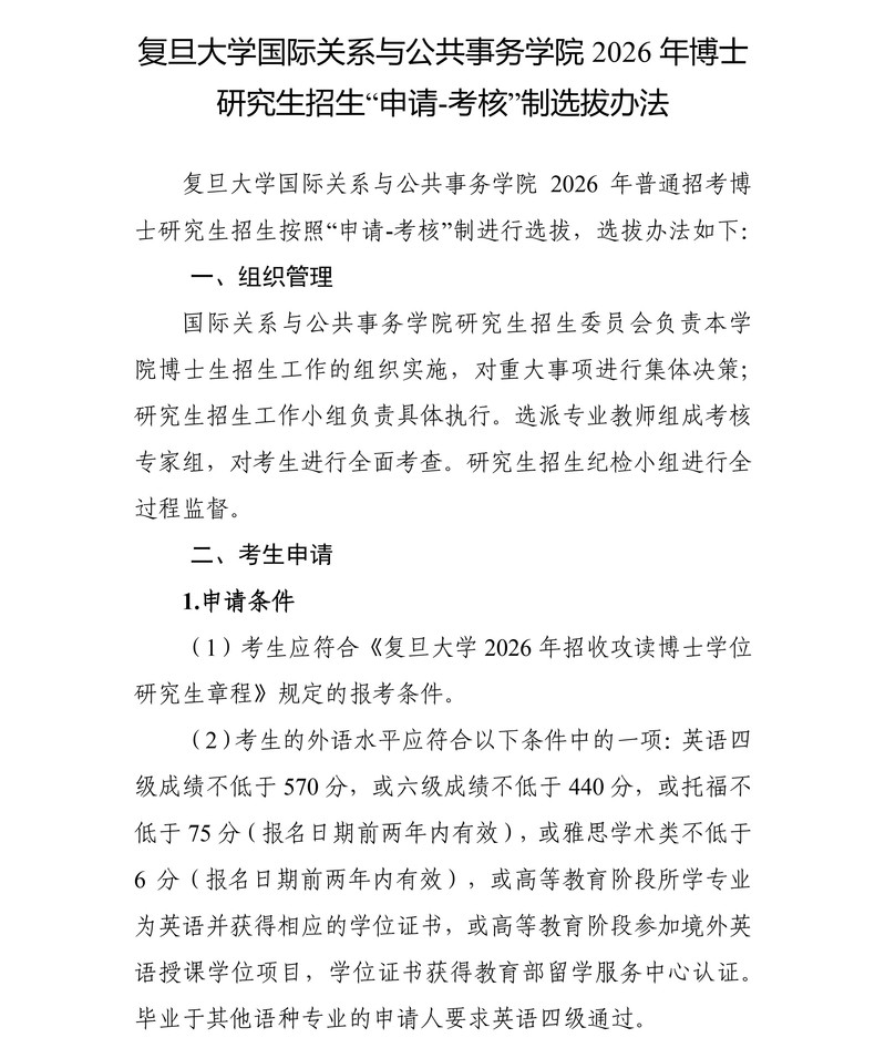 金牌影院 2026年博士研究生招生“申请-考核”制选拔办法
