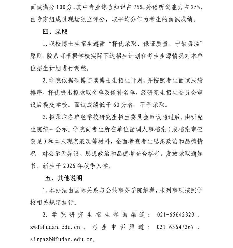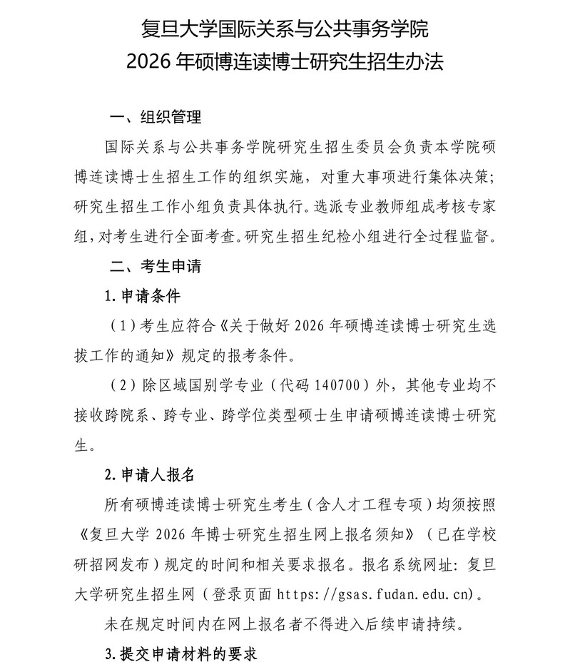 复旦金牌影院 2026年硕博连读博士研究生招生办法