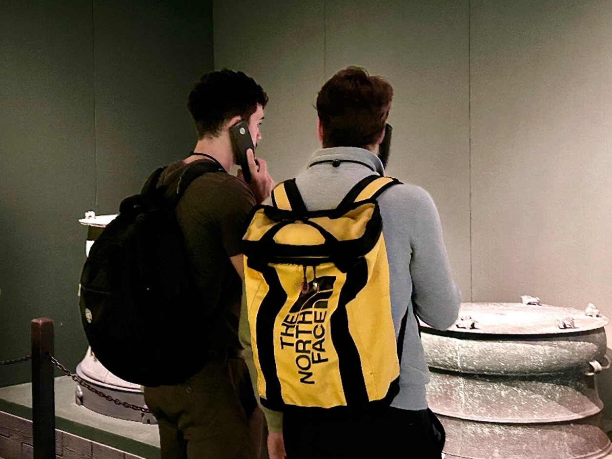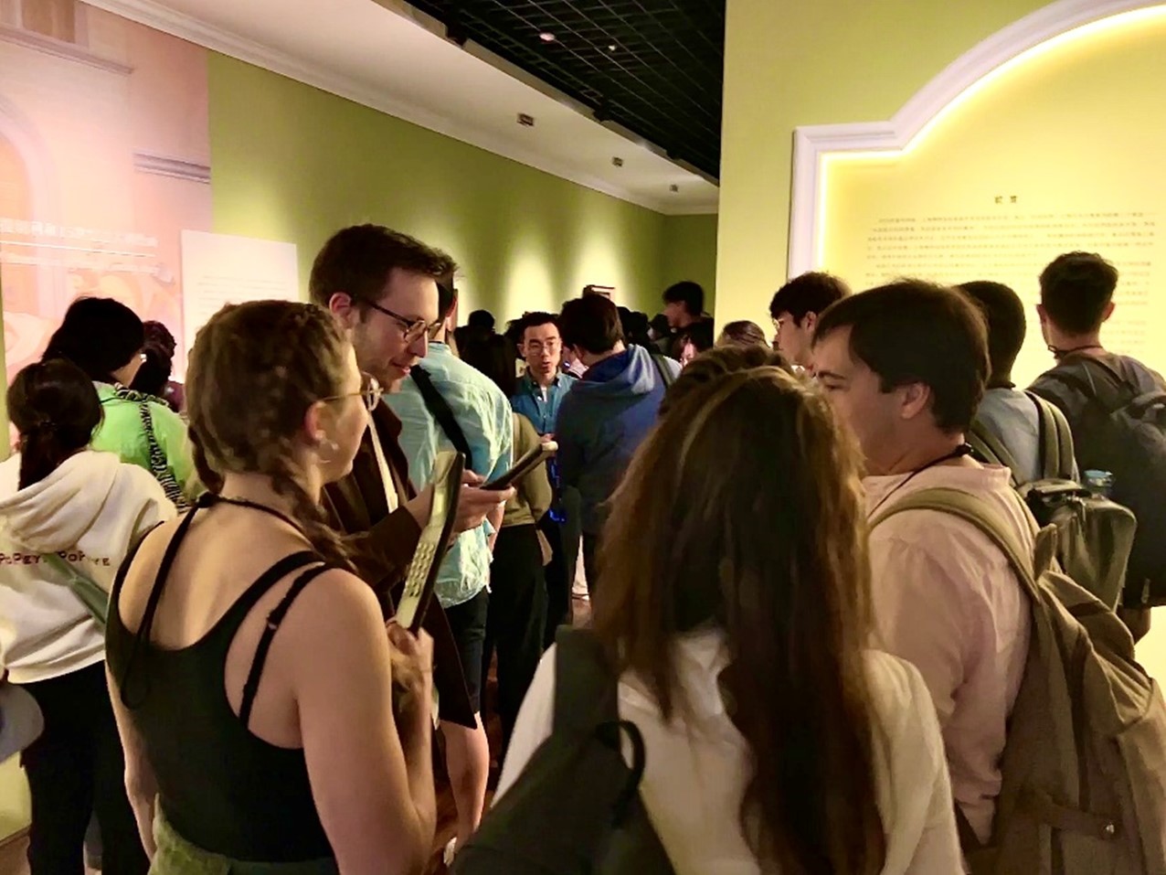 中国古代青铜馆陈列的400余件青铜器完整地反映了中国古代青铜的发展历史。留学生们通过讲解介绍,深入了解了古代中国社会生活的各个方面。中国古代印章馆则以印章艺术的发展历史为线索,展出了玺印篆刻500余件。精致隽永的独特篆印吸引了留学生们纷纷拍照。中国古代陶瓷馆收藏了500余件从新石器时期到清朝的精品陶瓷。留学生们通过近距离的观察意识到瓷器作为中国古代的一张名片,其大规模流行展现了全世界对中国古典文化的推崇。此外,留学生们还经过了玉器馆、民族馆和钱币馆,并对中国悠久深厚的历史文化有了更细致入微的认识。