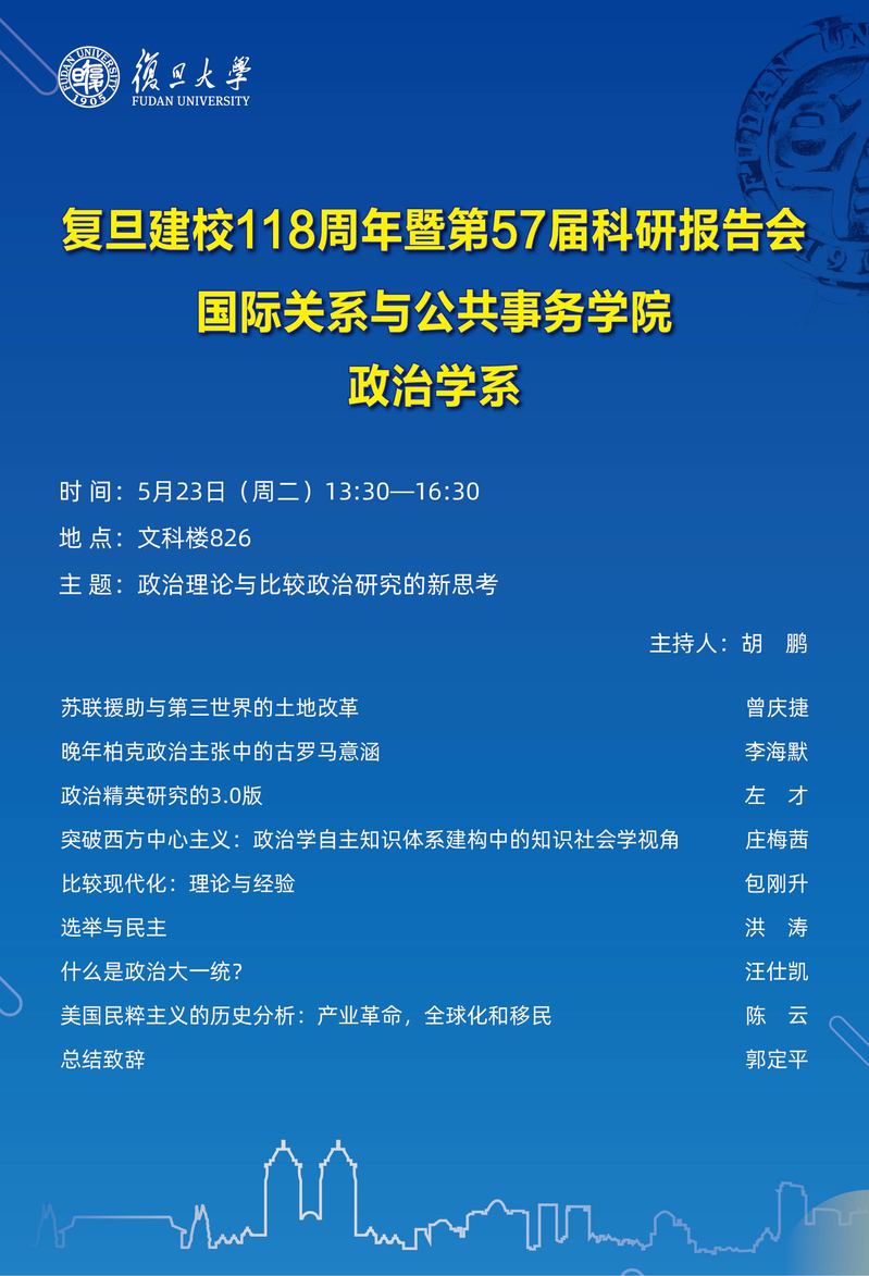 复旦建校118周年暨第57届科研报告会 | 政治理论与比较政治研究的新思考(5.23)