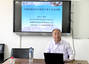 最后,郭定平教授谈了自己对于党员干部与青年在处理新时代的重大关系的理解,鼓励我们要与时俱进,面对国内外的不同的状况,要根据这个时代的不同的变化,及时调整我们的方针政策,正确处理各种关系,朝向更加强调公平的方向,以协调平衡的方式促进制度体系成熟定型,并期待在未来的历史时期中,加速推进中国式现代化建设,使我们的制度体系更进一步地走向成熟和稳定,确保全面建成社会主义现代化强国第二个百年奋斗目标如期实现。