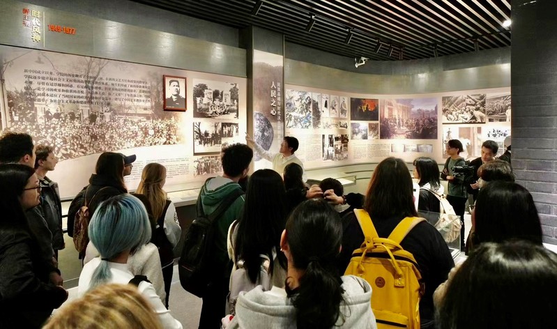 活动当日,阳光明媚,秋高气爽。上午8时,我院师生前往本次杭州行的第一站——位于西子湖畔的中国美术学院参观交流。中国美术学院国际教育学院、南特设计联合学院党委书记兼副院长胡敏对我院师生的到来表示热烈欢迎,带领同学们参观中国美术学院校史馆。在国美老师热情洋溢的介绍中,大家纷纷感受到中国艺术与文化的悠久历史与深刻底蕴。两院师生后续展开了亲切的交流并互换校名纪念品。