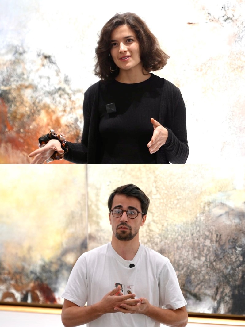 观展结束后,我院金牌影院 -法国巴黎政治大学国际政治专业双学位硕士生Rita Peignien和国际公共政策专业硕士生Thomas Hugo Mattei作为学生代表具体阐述了自己对于本次特展的印象和感想。他们表示,赵无极先生是法中友谊的化身,是中西文化交融对话的典范,他的艺术是东西文明互鉴在现代美术领域的最高成就,能来现场感受原画的魅力是极难得的机会,他们从画中也深刻感受到了中国精神和东方底蕴。