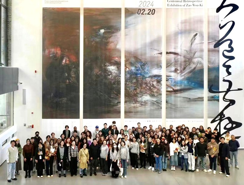 我院师生由中国美院老师陪同,重点参观欣赏了杭州第19届亚运会重要文化项目、2024中法文化旅游年项目、浙江省文化艺术发展基金重点项目“大道无极——赵无极百年回顾特展”。赵无极先生是享誉中外的华裔法籍著名画家,他融通中西,创造了极具特色的艺术风格,为东西方文化交流作出了独特贡献。同学们零距离感受这一传统与现代有机衔接的艺术现场,深刻感受了从传统到现代的跨越及中国式现代化文化形态的实践转化,都赞叹不已,纷纷拍照留念。