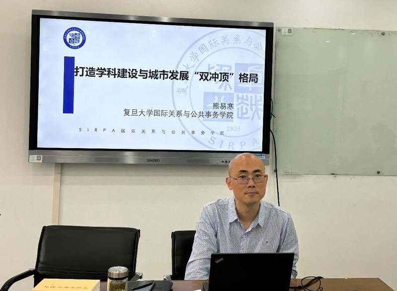 首先,熊易寒教授结合服务上海的调研内容,做了“打造学科建设与城市发展‘双冲顶’”的讲座辅导。
