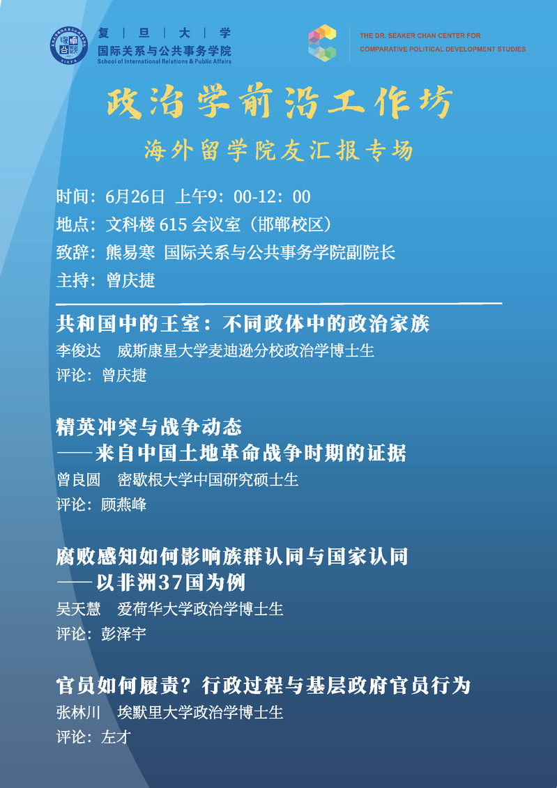 政治学前沿工作坊——海外留学院友汇报专场(6.26)