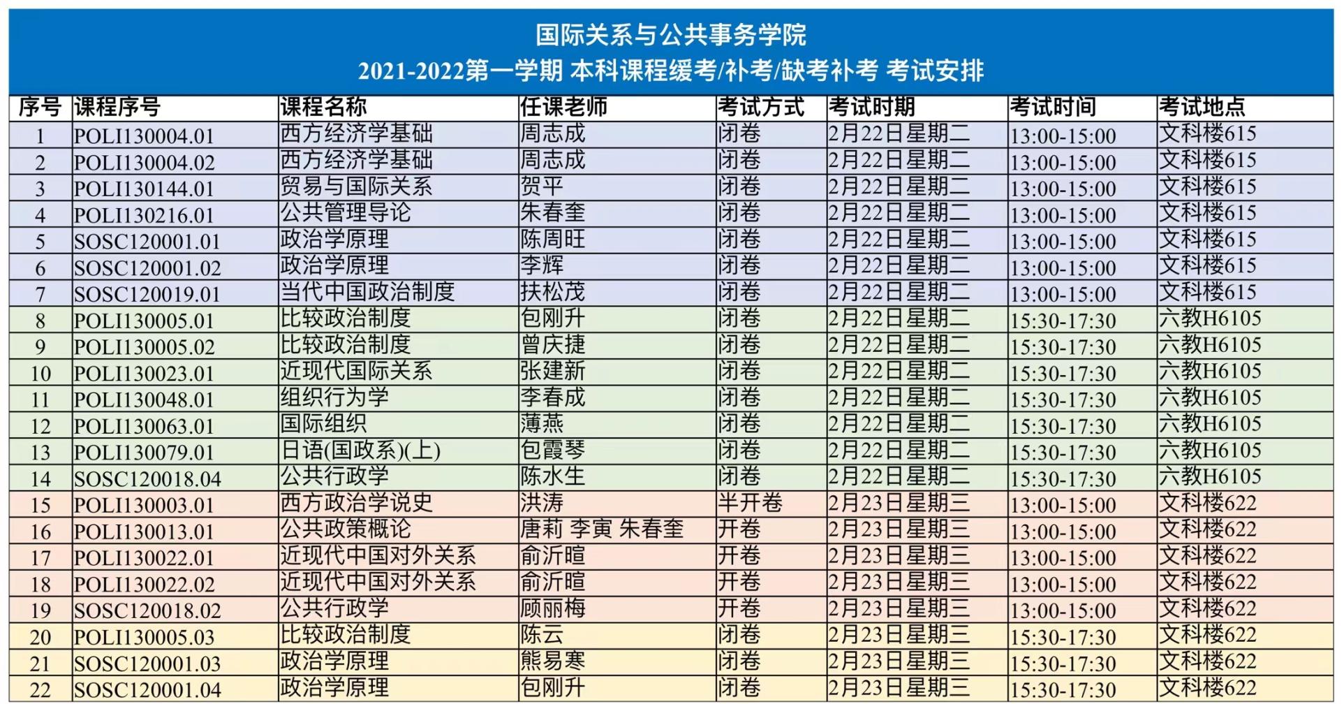 2021-2022学年第一学期金牌影院 本科科课程补缓考安排请见附图,相关考试安排已通过邮件发送至全体已申请缓考/补考/缺考补考同学的学号邮件,如尚未收到或学号邮箱不能接收邮件,请及时邮件联系我院本科教务中心,联系方式:[email protected],电话:55664294。